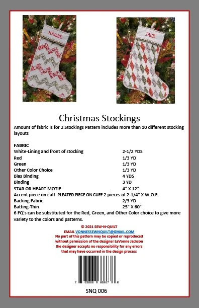 This is a very fun pattern that comes with multiple stocking designs within the pattern. Most of the designs are made using tiny half square triangles. The stocking names were put on using machine embroidery but other ways can be used to put a name on if desired. The binding is cut on the bias to bind the front to the back. There is detail added by making a tiny pleated ruffle to go on the bottom of the sock. The details add to the beauty of this stocking. The fabric used was from a line called “Christmas Morning” designed by Lellaboutique and manufactured by Moda. This is a strong beginner or intermediate pattern.