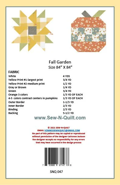 I love to decorate around the different seasons. This is a fun fall quilt. The pumpkins are playful and this allows for more color to be used within the quilt and who doesn’t love a sunflower. The methods used in this are snowballing corner, half square triangles, and quarter square triangle blocks. The fabric used in this were from a line by Corey Yoder, called “Cozy Up” manufactured by Moda. The quilt pattern is considered intermediate.