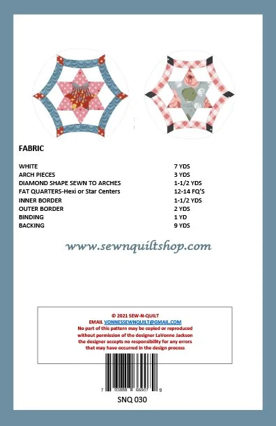 This pattern uses a template set that I designed. The templates come with a choice for a star center or a hexi center. The templates have holes and slots to mark where to match the pieces to ensure things will line up. There is a youtube tutorial besides the pattern on my site to take you every step of the way. The fussy cutting in the centers add to the beauty of this quilt.